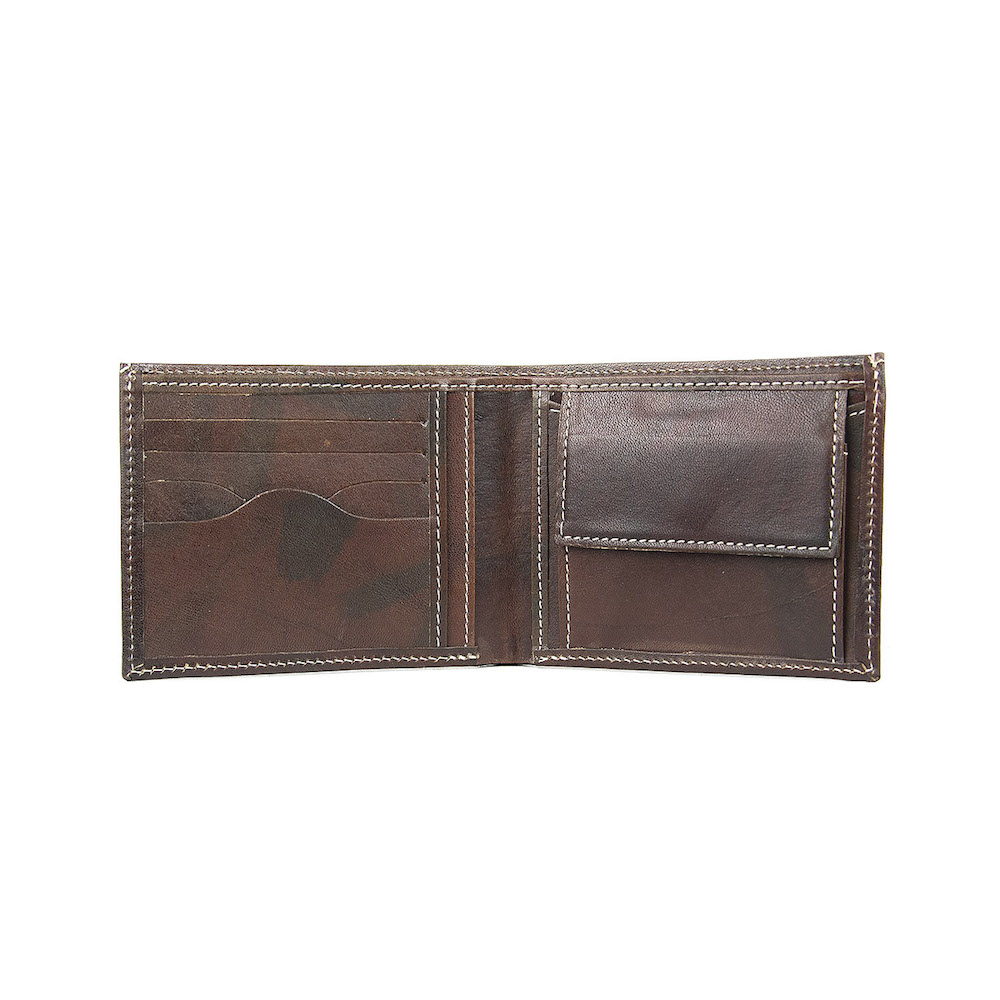 Peňaženka je ručne tamponovaná – farbená. Ručné tamponovanie zaručuje vysokú jedinečnosť a originalitu každého jedného koženého výrobku. Tamponovanie kože sa spracúva ručne. Jedná sa o náročné farbenie kože, ktoré zanechá na koži krásne odtiene farieb. Každý výrobok, ktorý je ručne tamponovaný je zároveň umeleckým dielom.