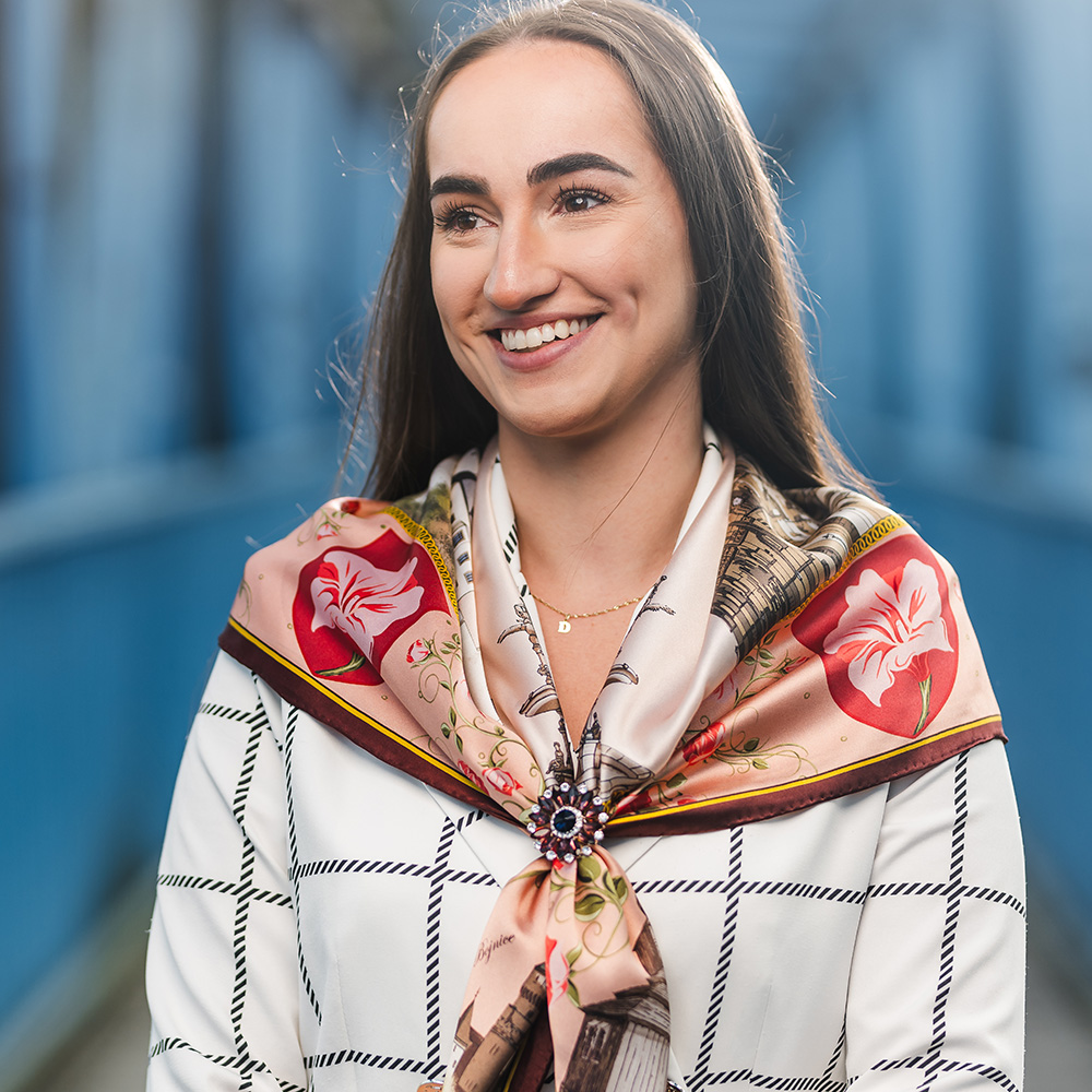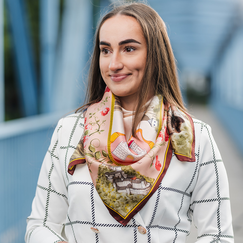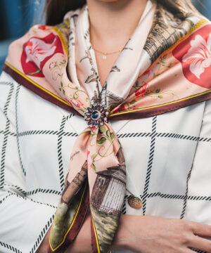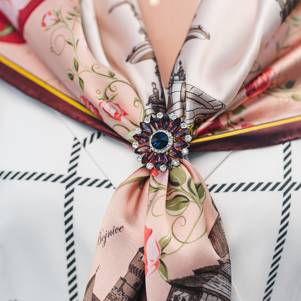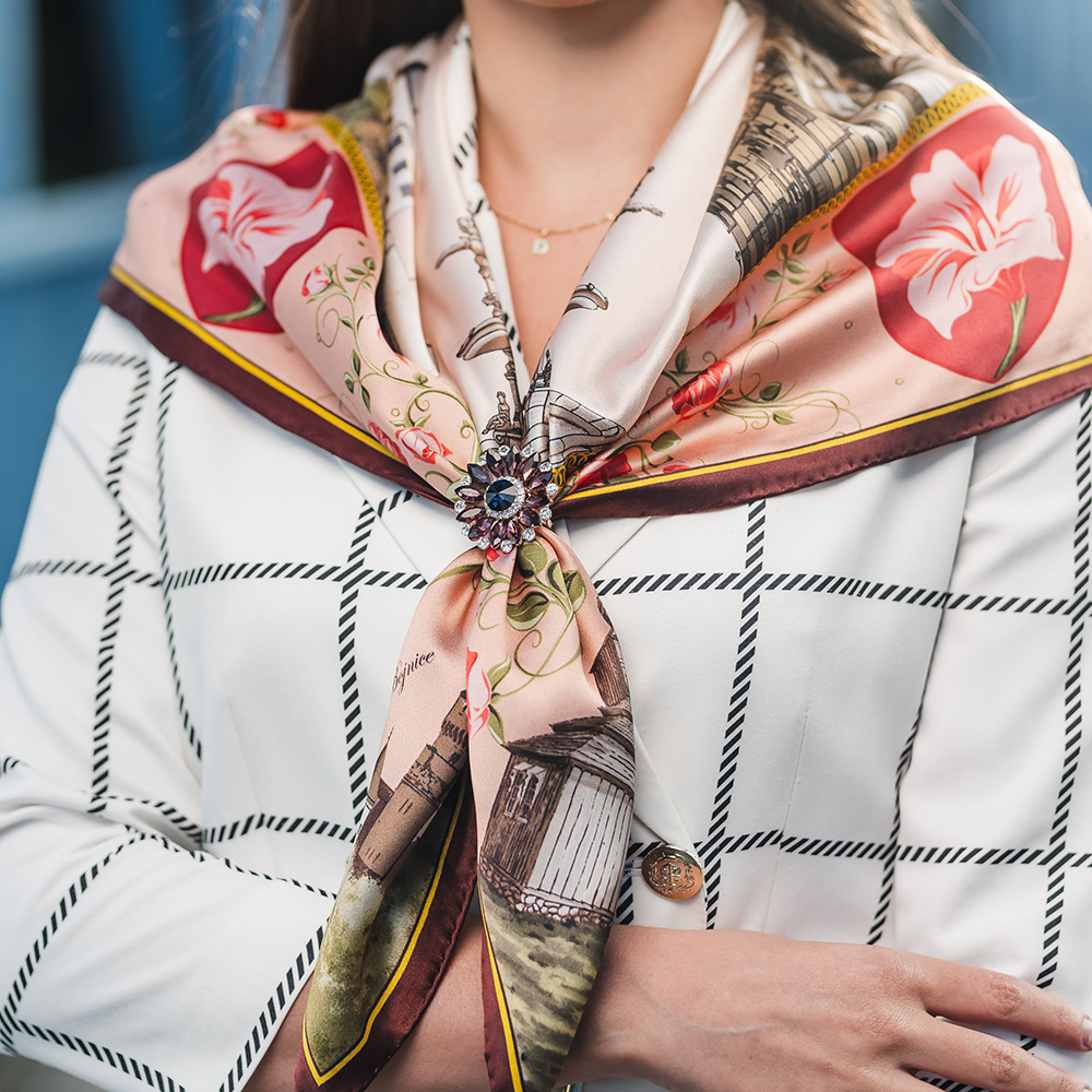 -klasická šatka okolo krku – vďaka vlastnostiam hodvábu je vhodné nosenie celoročne