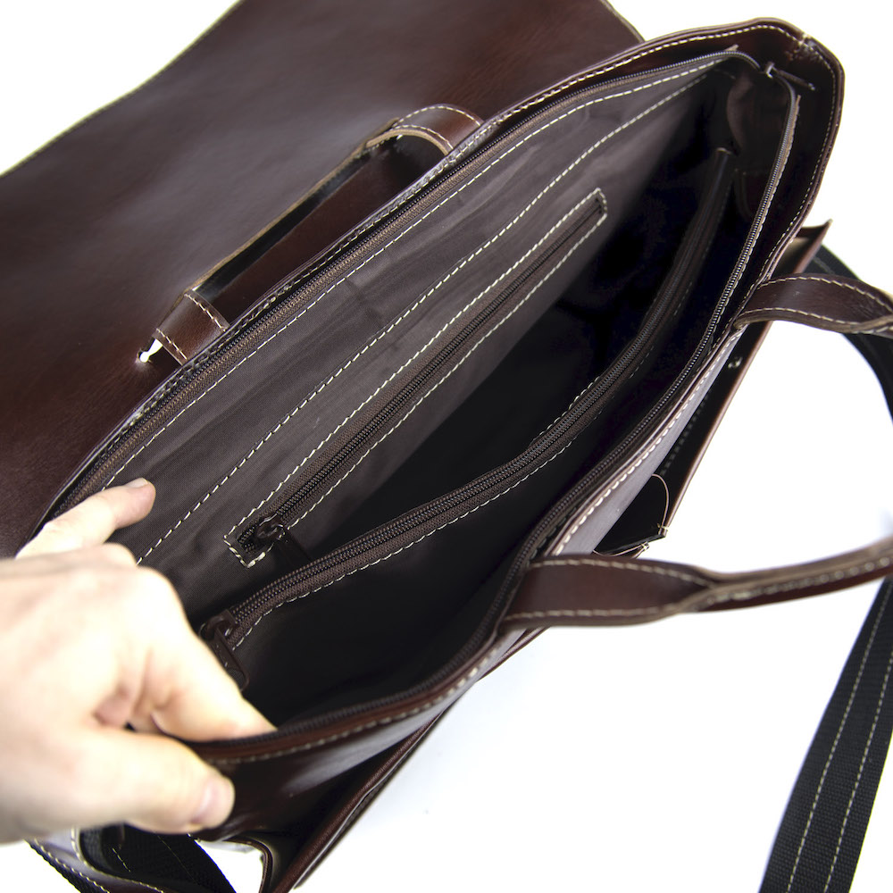 Exkluzívna kožená aktovka z kvalitnej a odolnej kože. Aktovka je plochá taška slúžiaca ako elegantné púzdro na uloženie rôznych spisov a dokumentov. Aktovka obsahuje držadlo, ktoré umožňuje aktovku niesť v ruke.