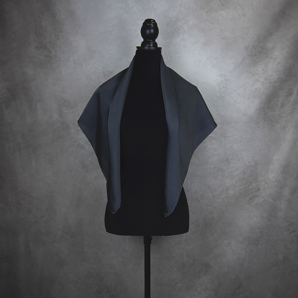 Postup tvorby: Šatka je farbená špeciálnym spôsobom, 100% prírodným pigmentom určeným priamo na farbenie hodvábu. Farba je zafixovaná, šatka vypratá a ošetrená fixátorom farieb. Okraje sú ručne zrolované a ručne prešité a následne je celá šatka vyžehlená.
