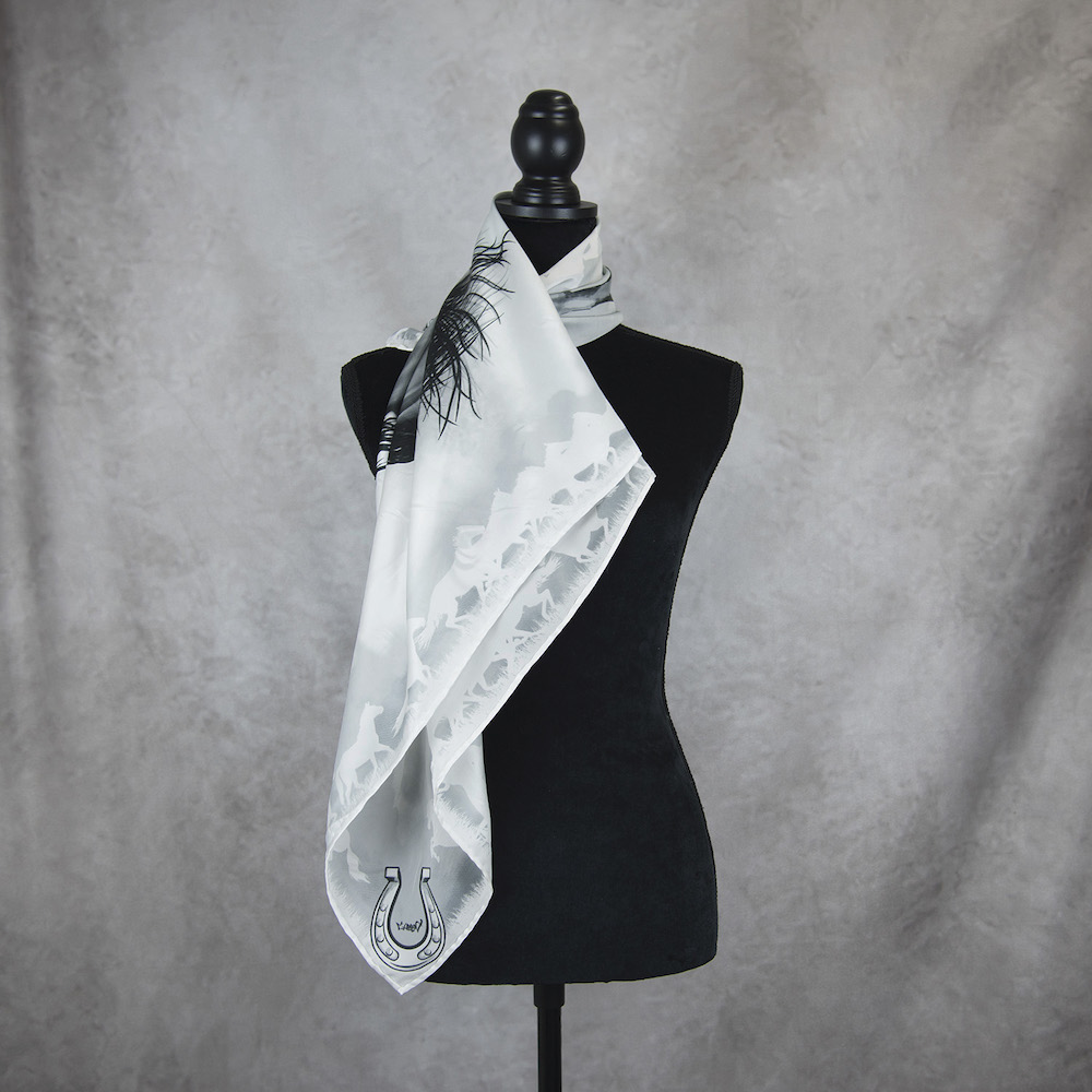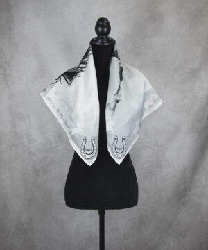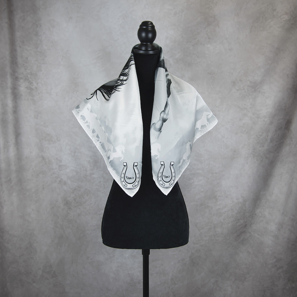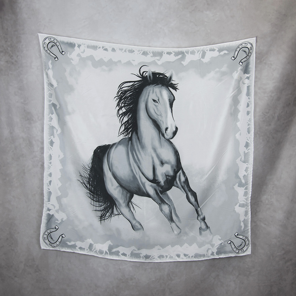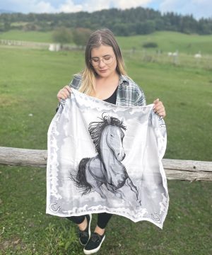 Exkuzívna hodvábna šatka Kôň – sivý, Ručná výroba na Slovensku, 90 x 90cm