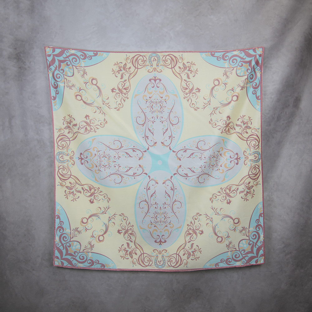 Postup tvorby: Motív na šatke je grafikom po dobu cca 3-4 týždne tvorený ručne a následne prekreslený do digitálnej podoby tak, aby sa dal použiť na sieťotlačovú techniku. Sieťotlač a špeciálne farby na hodváb umožňujú šatke plno-farebnosť z oboch strán a nie ako je to pri digitálnej potlači jednu stranu šatky bledú. Následne sú všetky kroky vrátane potlače všetkých farieb prevádzané ručne. Farba je zafixovaná, šatka vypratá a ošetrená fixátorom farieb, kraje sú ručne zrolované a ručne prešité a následne je celá šatka vyžehlená.