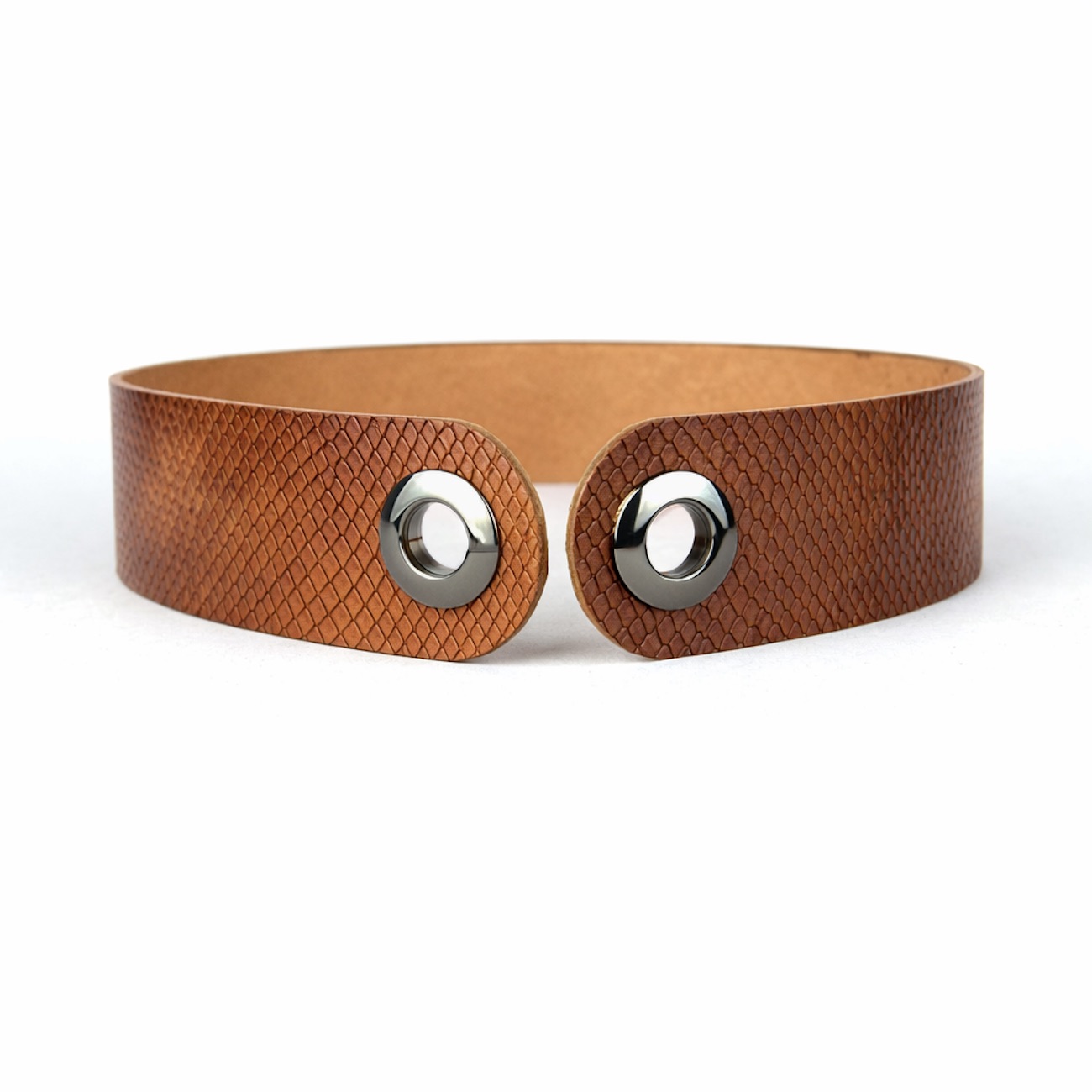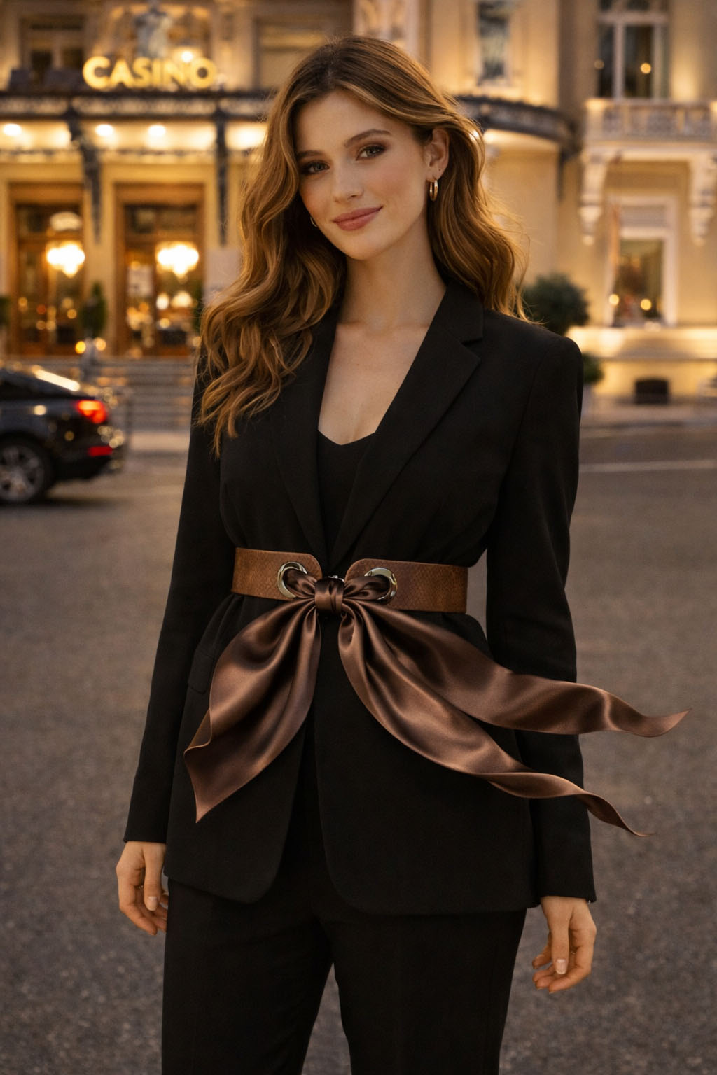 Kožené opasky viazané šatkou predstavujú originálny módny doplnok, ktorý spája pevnosť a kvalitu pravej kože s jemnosťou a eleganciou šatky. Ide o výrazný, no zároveň nadčasový prvok, ktorý zvýrazňuje pás a dodáva outfitu osobitý charakter. Kombinácia minimalistického koženého základu a dekoratívneho viazania vytvára harmonický kontrast medzi pevnou štruktúrou a hodvábnou látkou.