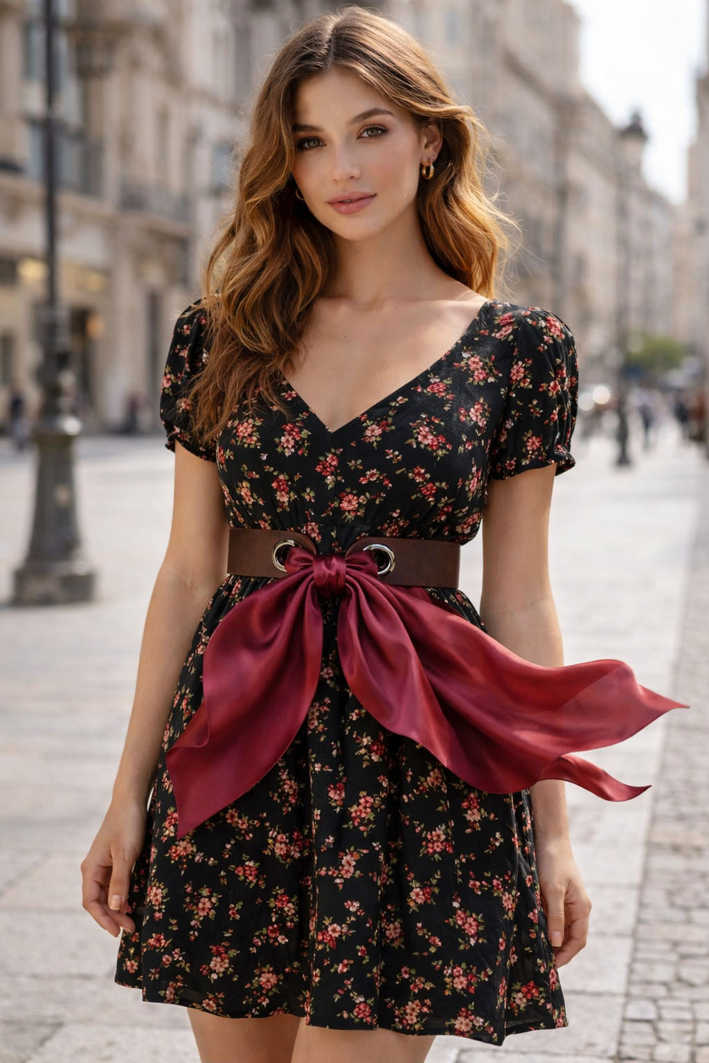 Elegantný kožený opasok viazaný šatkou je výrazný módny doplnok, ktorý dodá vášmu outfitu štýl a sofistikovanosť. Kombinácia kvalitnej kože a jemnej šatky vytvára originálny dizajn, ktorý zvýrazní pás a podčiarkne ženskú siluetu. Dominantným prvkom opasku je dekoratívne viazanie šatky cez kovové očká. Šatku môžete uviazať do výraznej mašle alebo uzla podľa vlastného štýlu. Vďaka tomu si jednoducho prispôsobíte vzhľad – od elegantného až po moderný a odvážnejší. Doplňte svoj šatník o nadčasový kúsok, ktorý spája eleganciu, kvalitu a originálny dizajn