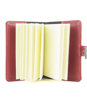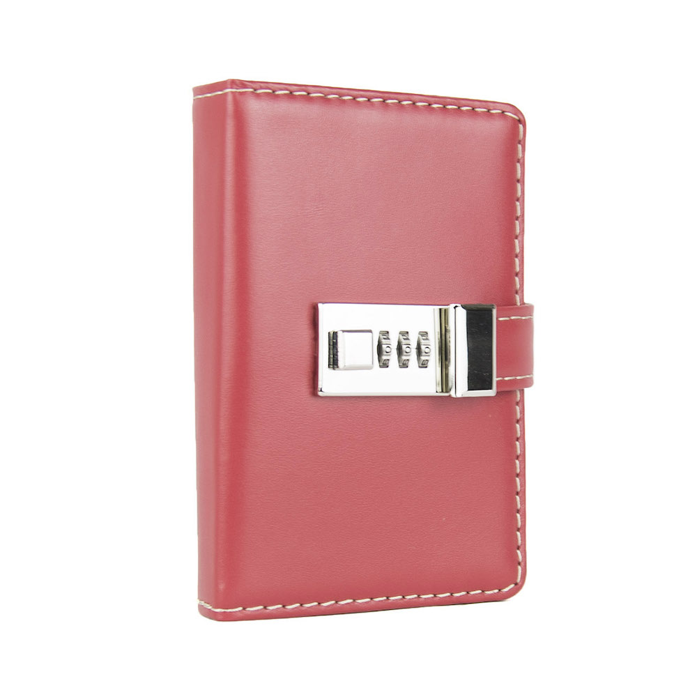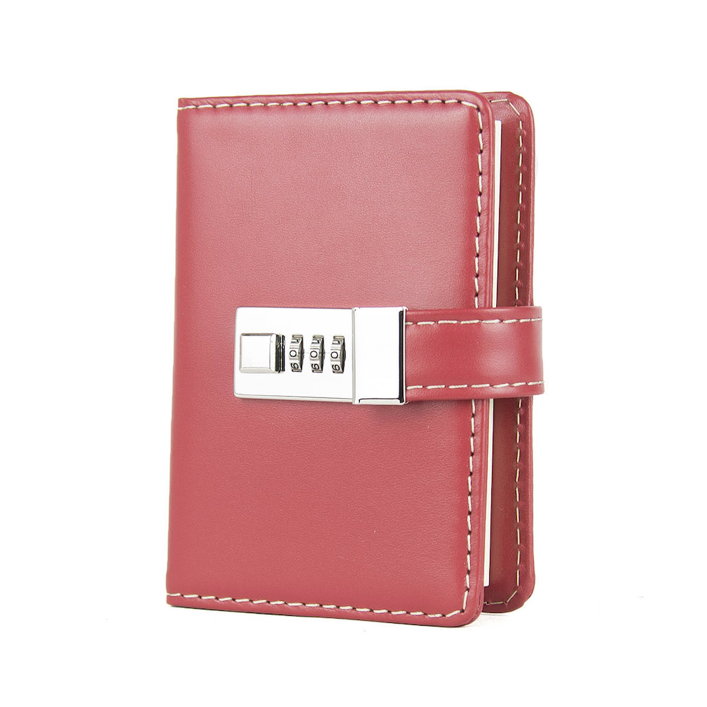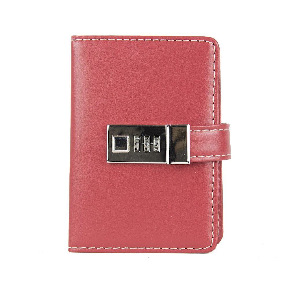 Menší Zápisník z prírodnej kože na heslový zámok. Obal je vyrobený z pravej hovädzej kože. Koža je pevná a drží tvar. Kožený zápisník je vyrobený z prírodnej triesločinenej usne. Následné je ošetrený priehľadným lakom, ktorý chráni materiál pred bežným mechanickým poškodením a premočením. Zápisník s prírodnej kože s otváraním na heslový zámok je svojou veľkosťou vhodný do každej pánskej alebo dámskej tašky.