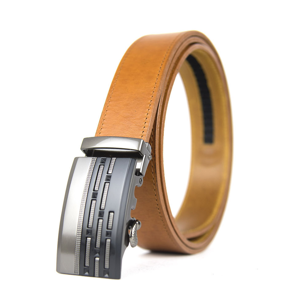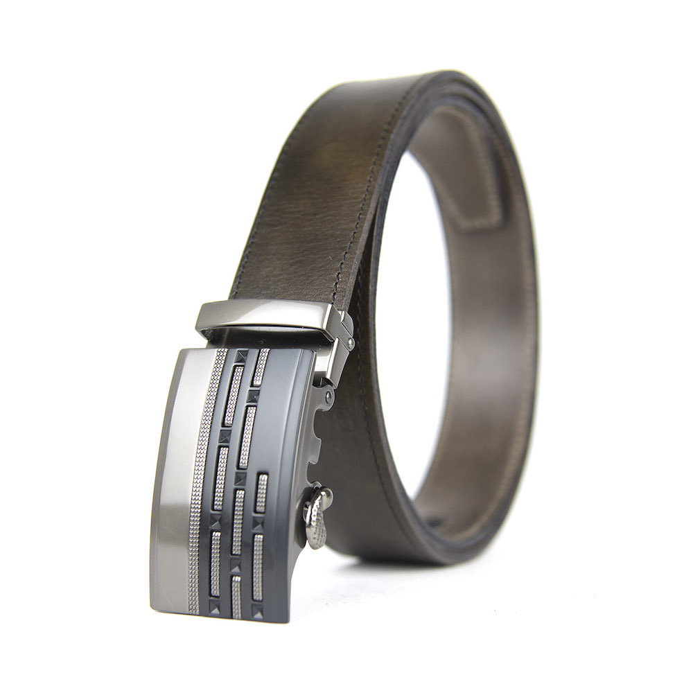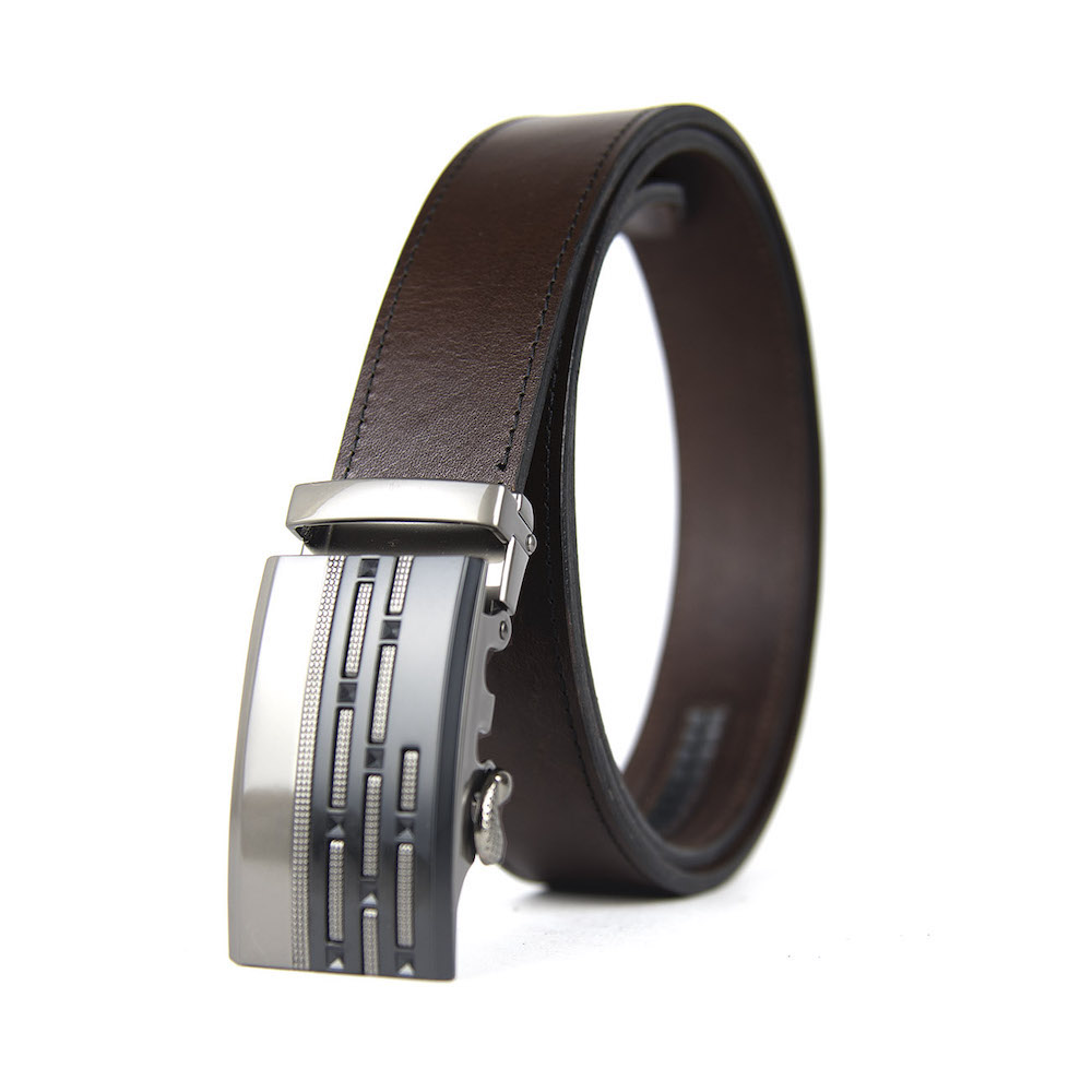 Opasok z pravej kože s automatickou prackou. Kožený opasok je vyrobený z pravej talianskej kože. Automatická nadčasová pracka zaručí obdiv a prestíž. Pracka sa automaticky zapína pomocou dlhej roletky na vnútornej strane opasku. Je možné nastavovať si dĺžku podľa svojich požiadaviek. Kožený pasok je vhodný pre biznismenov a mladých ľudí. Naše módne opasky sú vybavené prakticky nezničiteľným, skrytým track systémom s viac než 20 + dimenzovanými bodmi, takže si môžete upraviť svoj opasok pre dokonalé prispôsobenie Vášmu pásu. Všetky naše jedinečné kožené opasky s automatickou prackou na opasok používajú jednoduchý, pružinou kalibrovaný mechanizmus alebo mechanizmus založený na magnete pre dokonalé zaistenie pracky s track systémom.