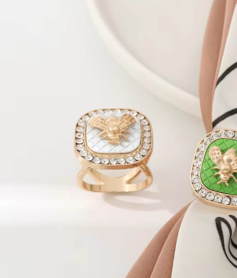 Ozdoba na šatku a šál v podobe zlatej pečate so včielkou