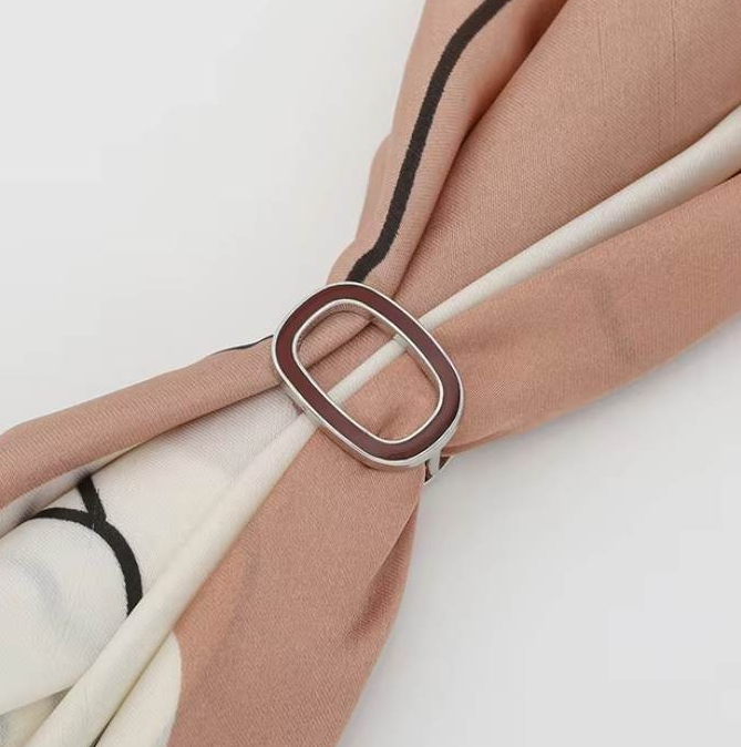 Ozdoba na šatku a šál v striebornej farbe s bordovým oválom