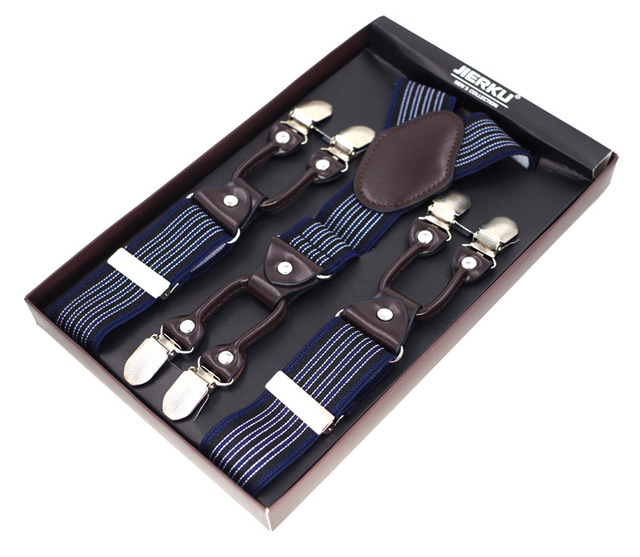 Elegantné kožené traky s nádherným dekorom sú vhodné predovšetkým pre mužov. Traky sú vhodné na každodenné nosenie a obsahujú 6 klipov na zapínanie. Kožené traky sú vyrobené zo syntetickej kože kombinovanej s elastickým materiálom. Ponúkajú nastaviteľný elastický pás, ktorý je možné prispôsobiť svojej dĺžke. Traky obsahujú strieborné svorky na nastavenie dĺžky pásu.  Traky je možné nosiť k obleku alebo príležitostne. Sú vyrobené z elastického materiálu, aby sa prispôsobili Vašim potrebám.
