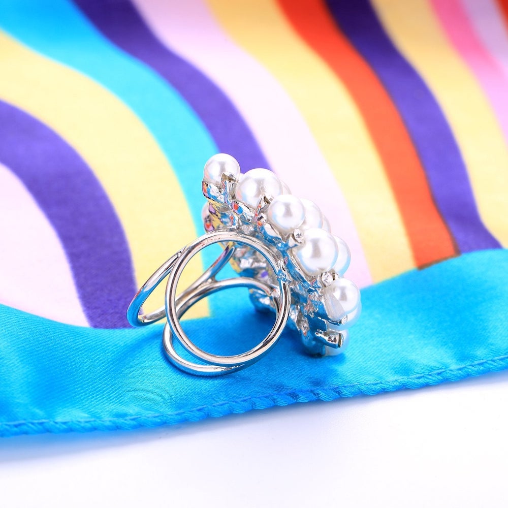 Luxusná spona Kytica periel ponúka zhluky perál, ktoré sa striedajú so žiarivými kamienkami a tvoria dokopy kyticu. Táto spona je vyrobená z pozlátenej zliatiny. Obsahuje trojprstenec aby sa dala prevliecť a naaranžovať na hodvábnu šatku alebo hodvábny šál. Tento fantastický módny doplnok dodá každému oblečeniu šmrnc a rafinovanosť. Vaša hodvábna šatka bude vďaka tomuto prstencu ozdobou Vášho oblečenia. Skvelý a praktický darček pre Vašu milú.