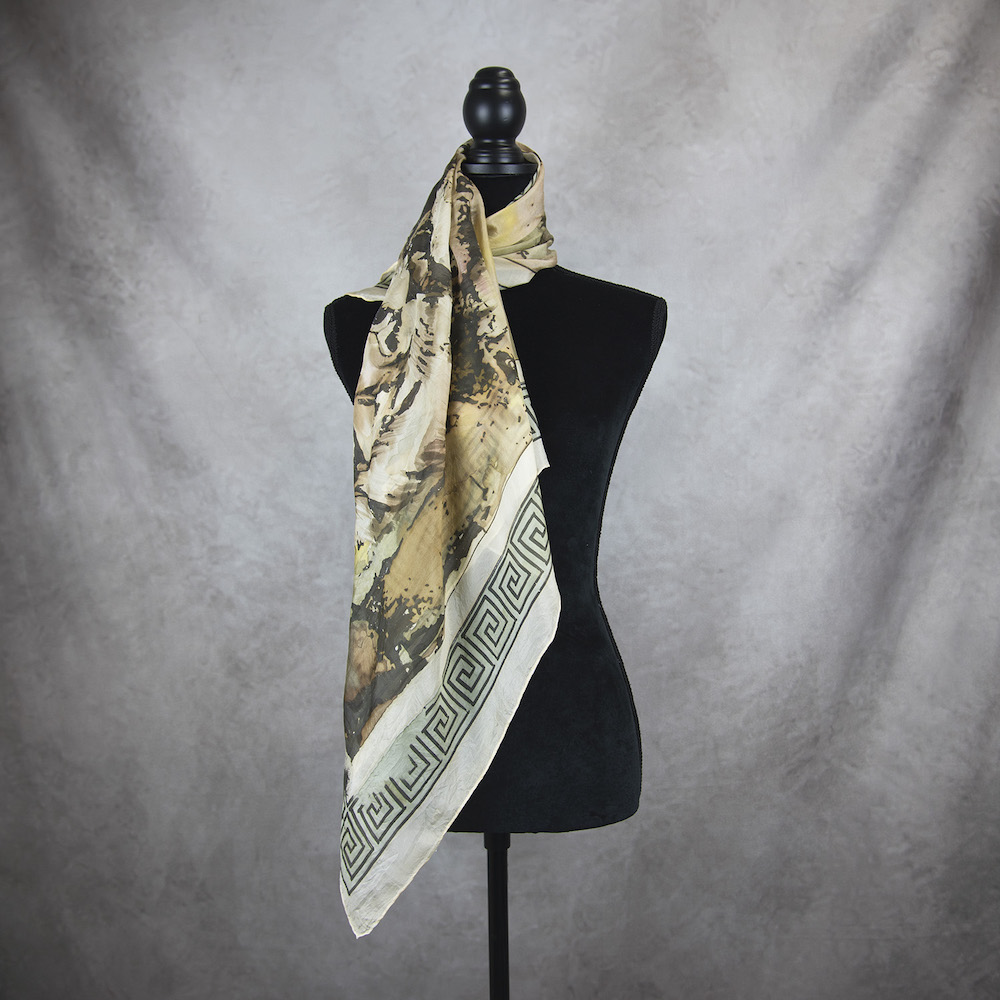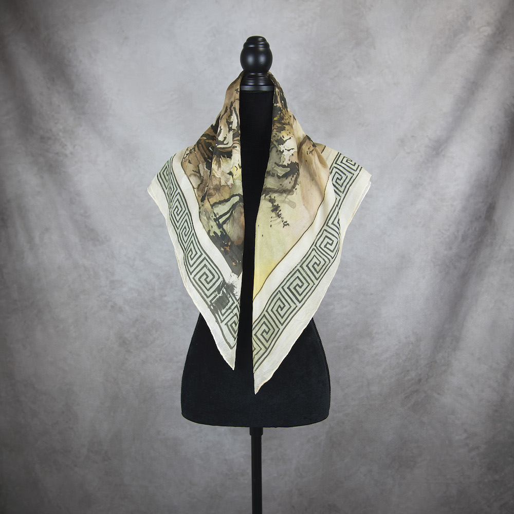 Ručne maľovaná hodvábna šatka maľovaná pomocou kvalitných farieb určených na hodváb s dizajnom inšpirovaným prírodou.