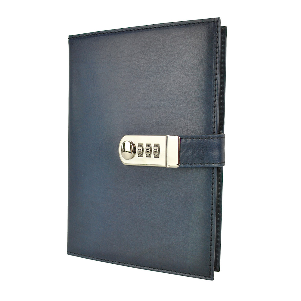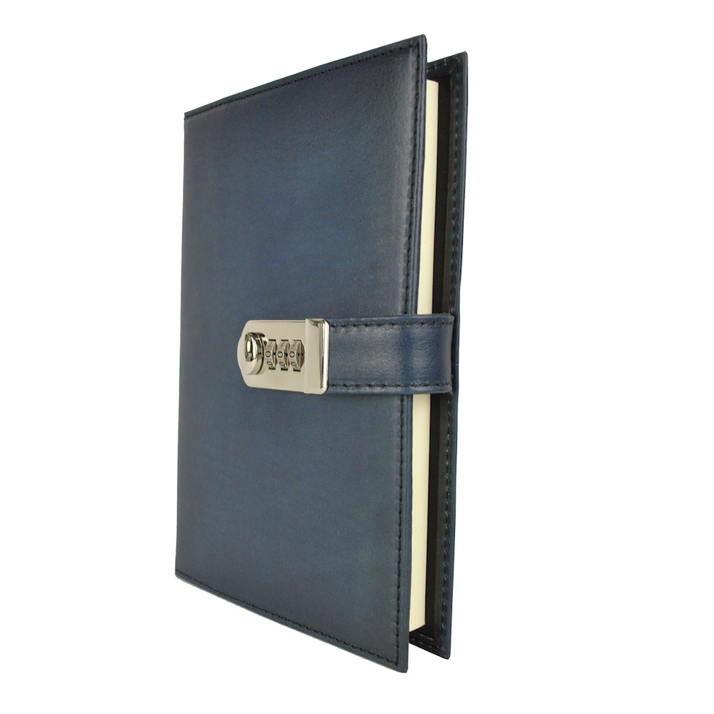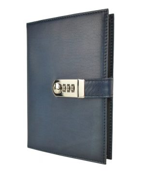 XXL zápisník z prírodnej kože na heslový zámok. Obal je vyrobený z pravej hovädzej kože. Koža je pevná a drží tvar. Kožený zápisník je vyrobený z prírodnej triesločinenej usne. Následné je ošetrený priehľadným lakom, ktorý chráni materiál pred bežným mechanickým poškodením a premočením. Zápisník s prírodnej kože s otváraním na heslový zámok je svojou veľkosťou vhodný do každej pánskej alebo dámskej tašky.